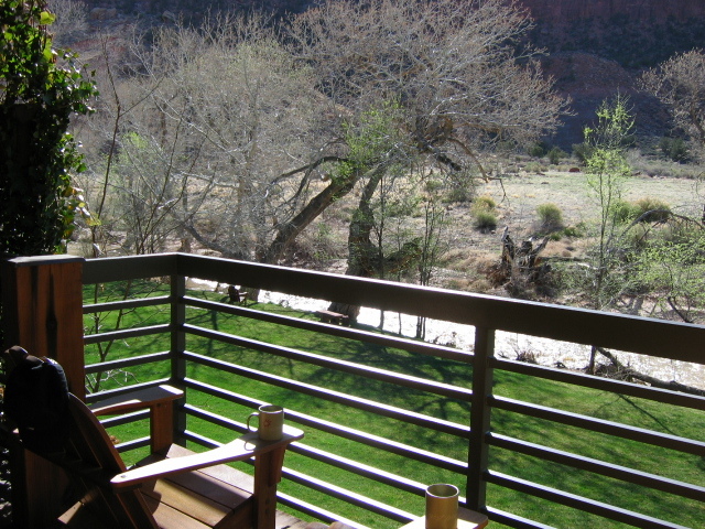 We stayed in Springdale at the Desert Pearl Inn, (riverside room) right outside the park.