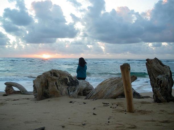 gf watching sunrise at Lydgate Beach on Kaua'i