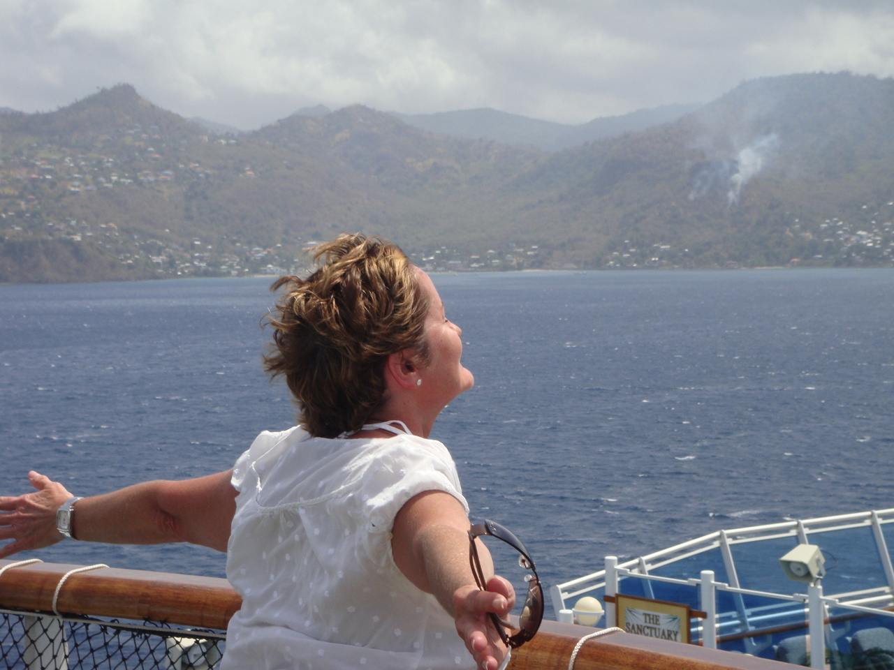 Ok, I had to resort to asking my teenager to help me post my entry and this is it...please click on above to view my picture. I promised my son that I would do a "Titanic" photo for him while cruising