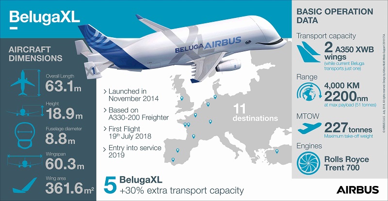 Following the first flight, the BelugaXL will undergo some 600 hours of flight test over ten months to achieve type certification and entry into service later in 2019.