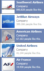 (number of "FaceBook Fans" for each respective airline, for those that aren't familiar. For some relative comparison, nonrev.net has roughly 18,000 facebook fans. )